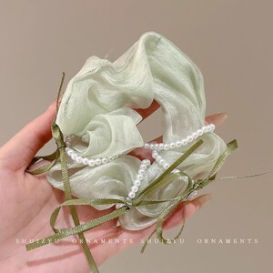 浅绿网纱珍珠大肠发圈~约11cm
