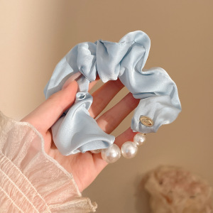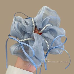 蓝色网纱珍珠大肠发圈~约11cm