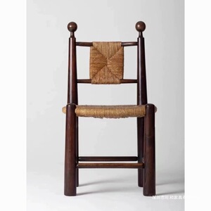 中古实木编藤餐椅复古草藤椅子家用简约民宿咖啡厅休闲藤椅靠背椅