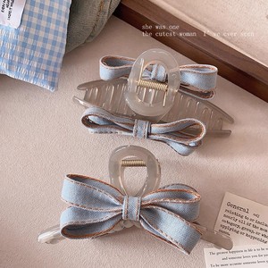 韩系浅蓝色蝴蝶结大号抓夹新款精致百搭后脑勺盘发鲨鱼夹气质发饰