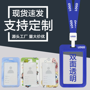 双面透明推拉滑盖工作身份证件保护卡套校园学生挂脖饭卡公交门禁