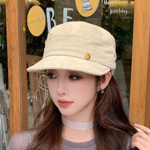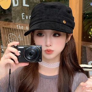 日系褶皱鸭舌贝雷帽女春秋新款文艺复古马术帽子报童帽百搭显脸小
