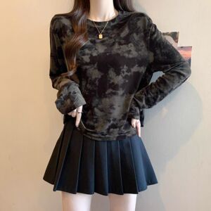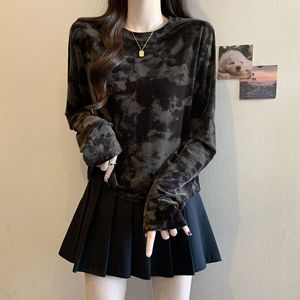 大码德绒复古扎染长袖T恤女秋冬季新款洋气显瘦内搭打底衫上衣ins