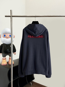 巴黎正确版B家红色胶带刺绣字母美纹纸帽衫高版本B潮牌连帽卫衣