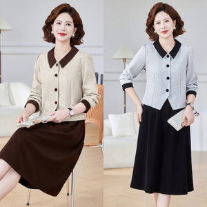 妈妈小外套搭配半身裙子两件套气质2025新款中老年女装春秋套装