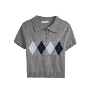 纯欲学院风菱格短袖针织衫女夏季新款修身显瘦气质百搭菱格上衣女