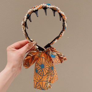 45#咖棕色大点点齿梳飘带发箍
