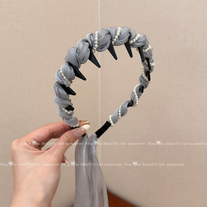 85#灰色珍珠发箍 飘带约50cm