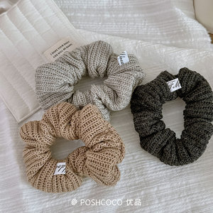 韩国简约早秋新款网红针织毛线大肠发圈慵懒风温柔头花皮筋发饰女