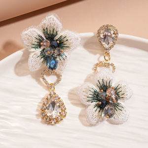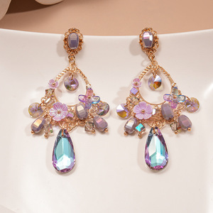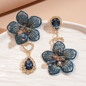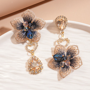 欧美跨境镶钻树脂蝴蝶花朵水滴吊坠耳环轻奢高级感耳钉民族风耳饰