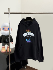 巴黎正确版B家彩色弧形刺绣字母帽衫高版本男女B潮牌毛圈连帽卫衣