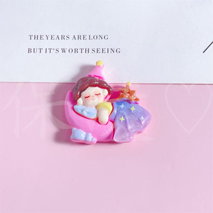 创意卡通月亮船睡觉小女孩树脂配件 手工diy奶油胶饰品挂件配饰