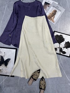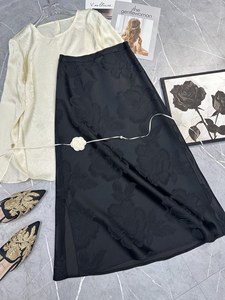 南油直播2025秋季新款时尚百搭高腰显瘦人丝提花半身裙复古中长裙