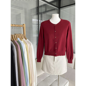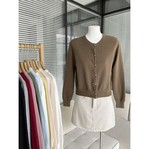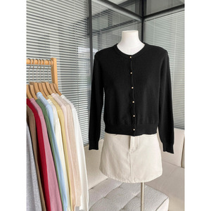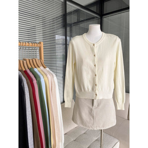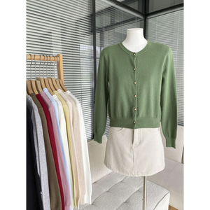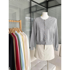 韩系简约圆领单排扣糖果色针织开衫女新款早秋温柔风长袖外套