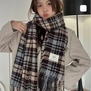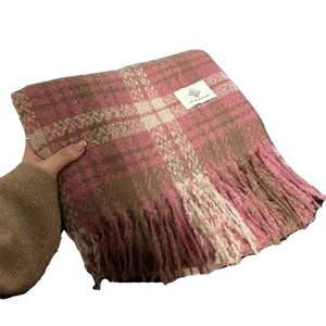 2025新款格子围巾女秋冬季高级感保暖千鸟格美拉德韩系干枯玫瑰粉