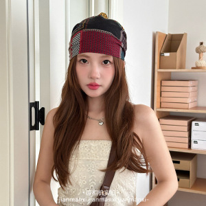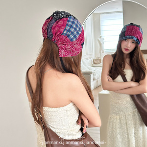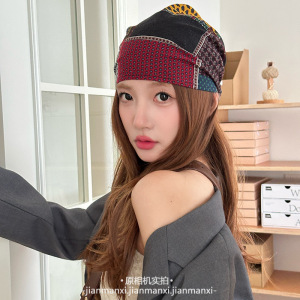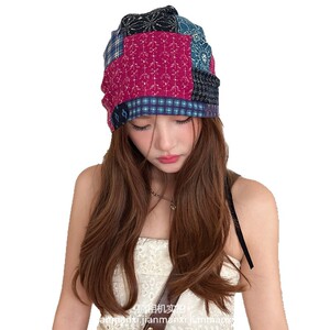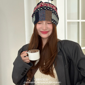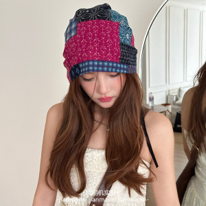 民族风复古碎花拼接绑带包头帽子女夏季薄款头巾帽川西旅游堆堆帽