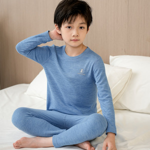 儿童保暖内衣加绒德宝宝睡衣新款打底男女童羊绒蚕丝秋衣秋裤套装