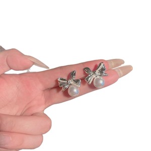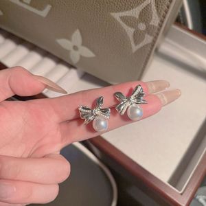 法式芭蕾风蝴蝶结珍珠耳钉少女气质高级感耳环2025新款爆款耳饰女