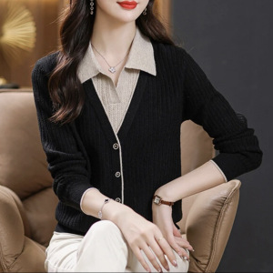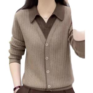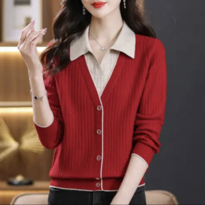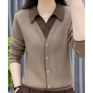2025高品质秋冬保暖毛衣女新款时尚衬衫领假两件毛衫