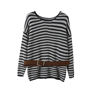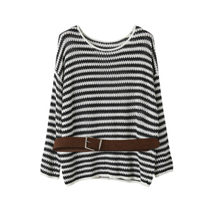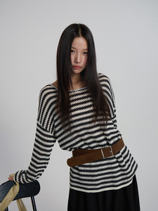【欧凡】黑白条纹长袖针织毛衣女2025秋季新款时尚松弛感上衣3126