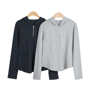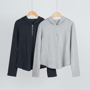 简约百搭 软糯有型 简约百搭运动休闲半拉链修身连帽卫衣上衣早秋