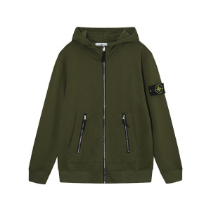 跨境正确STON石头衫秋冬男女连帽卫衣纯色岛袖标徽章款拉链卫衣外