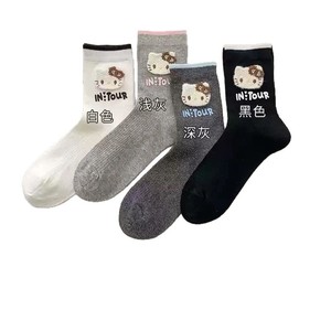 春夏款 ins字母堆堆袜kt猫袜子女韩版甜美可爱卡通日系学生中筒袜