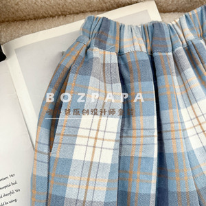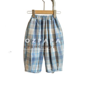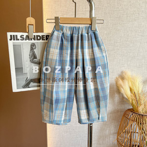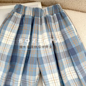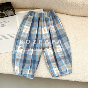 2025秋季男童韩系休闲蓝色格纹设计扩版长裤儿童宝宝百搭潮酷范
