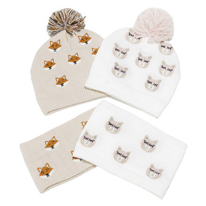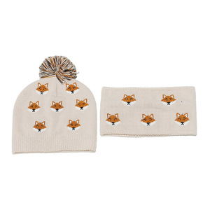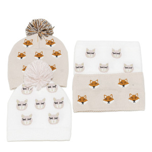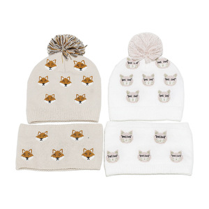 跨境冬季新款儿童针织帽围脖套装可爱狐狸动物保暖针织帽子2件套