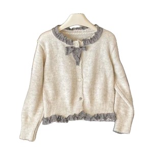 韩系别致木耳边拼接圆领针织开衫女秋季新款设计感蝴蝶结毛衣外套