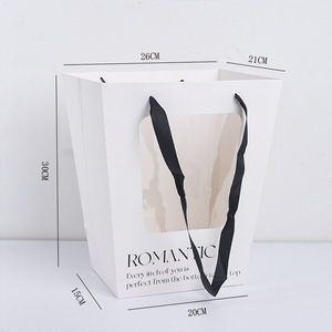 卓兰T型开窗手提袋橱窗手拎袋简约英文ins风加厚纸袋鲜花打包材料