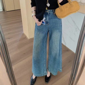 X8977秋季新款高腰跨境外贸裤子女士宽松牛仔裤 高级棉质垂感阔腿