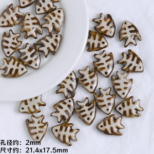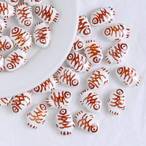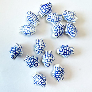 手绘复古陶瓷小鱼散珠 手工diy串珠材料项链手链饰品配件陶瓷珠子