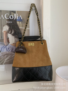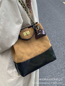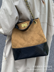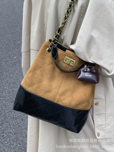 高级感小众包包女式2025新款单肩包复古麂皮绒菱格链条斜挎水桶包