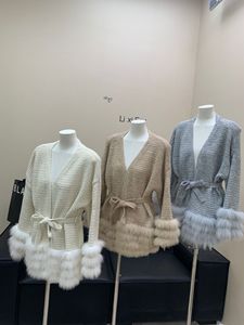 2025秋冬新款 真狐狸毛浴袍日式针织衫 长款宽松慵懒毛衣外套女