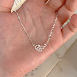 S925纯银水晶项链女锁骨链微镶锆石短款颈链轻奢高级感保色项饰