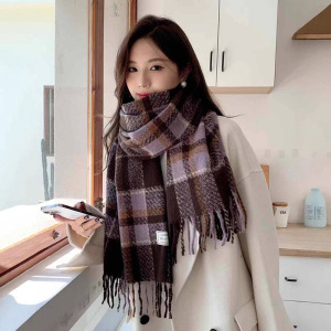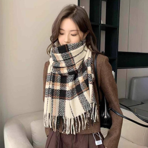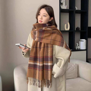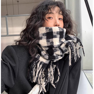 围巾秋冬女2025新款秋冬韩系氛围感格子围巾高级感英伦风围脖批发