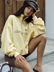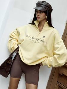 欧美跨境亚马逊字母印花卫衣上衣女春秋款加厚连帽慵懒立领外套女