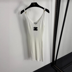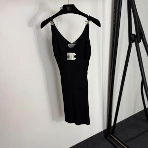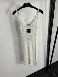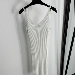 2025夏季南油高端外贸新款小香logo贴布 坑条纹V领针织吊带连衣裙