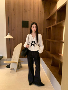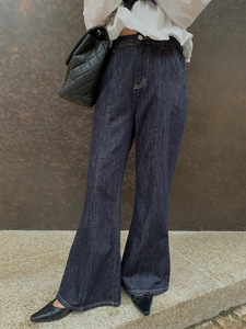 诠释美 NEWOPEN 25秋休闲复古百搭棉质深蓝高腰微喇牛仔裤女F6368