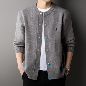 2025春秋季新款纯色男士针织圆领开衫外套潮牌夹克棒球服针织外套