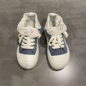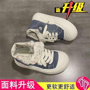 小香风碎花帆布鞋女高帮鞋子2025新款秋季小众厚底圆头板鞋ins潮