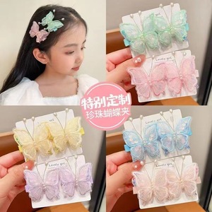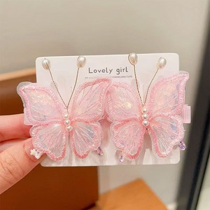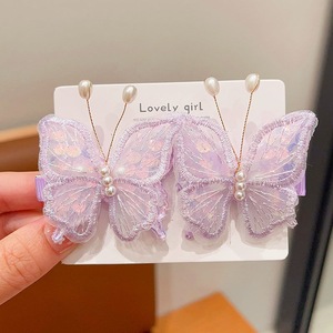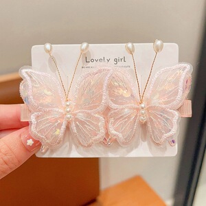 带触角的古风儿童网纱仙气蝴蝶亮片对夹儿童公主甜美头饰学生礼品