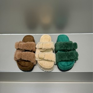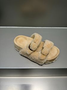 2025新款羊羔毛毛鞋双扣勃肯鞋厚底松糕一字凉鞋托外穿拖鞋女鞋