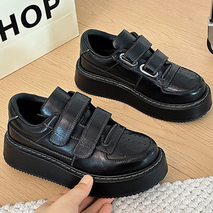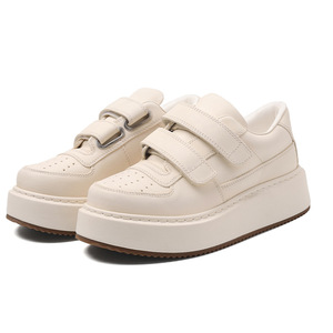 马皮水洗小白鞋女2025秋季新款增高厚底真皮魔术贴休闲百搭女板鞋