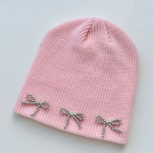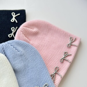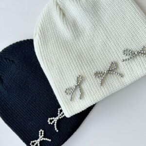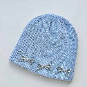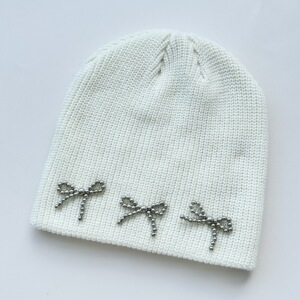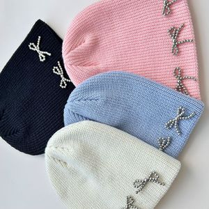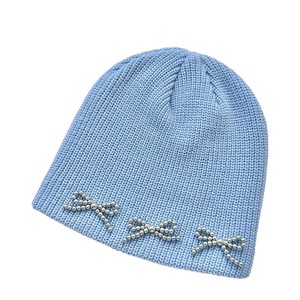 HUAYI 甜酷博主同款针织帽串珠蝴蝶结毛线帽秋冬ins保暖时髦冷帽