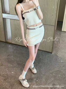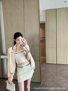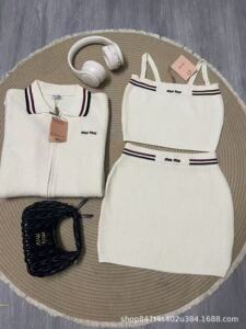新款MIU系polo领针织衫外套短款减龄时尚m套装开衫背心裙三件套装
