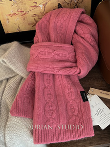 100%澳洲精选纯羊毛经典麻花英伦安可拉红复古围巾女冬季绞花围脖