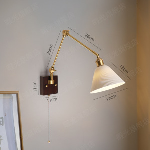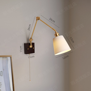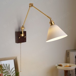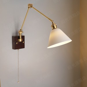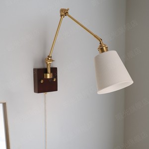 日式复古陶瓷胡桃木色白蜡木壁灯简约折叠伸缩黄铜卧室床头壁灯