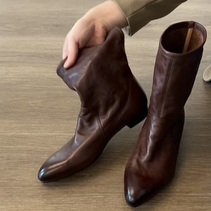 文艺复古大筒围烟筒靴2025新款秋冬新款尖头低跟中筒靴直筒马丁靴